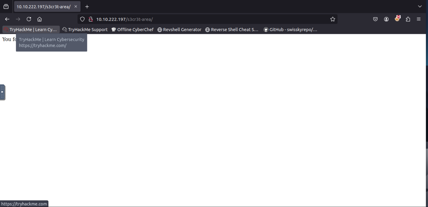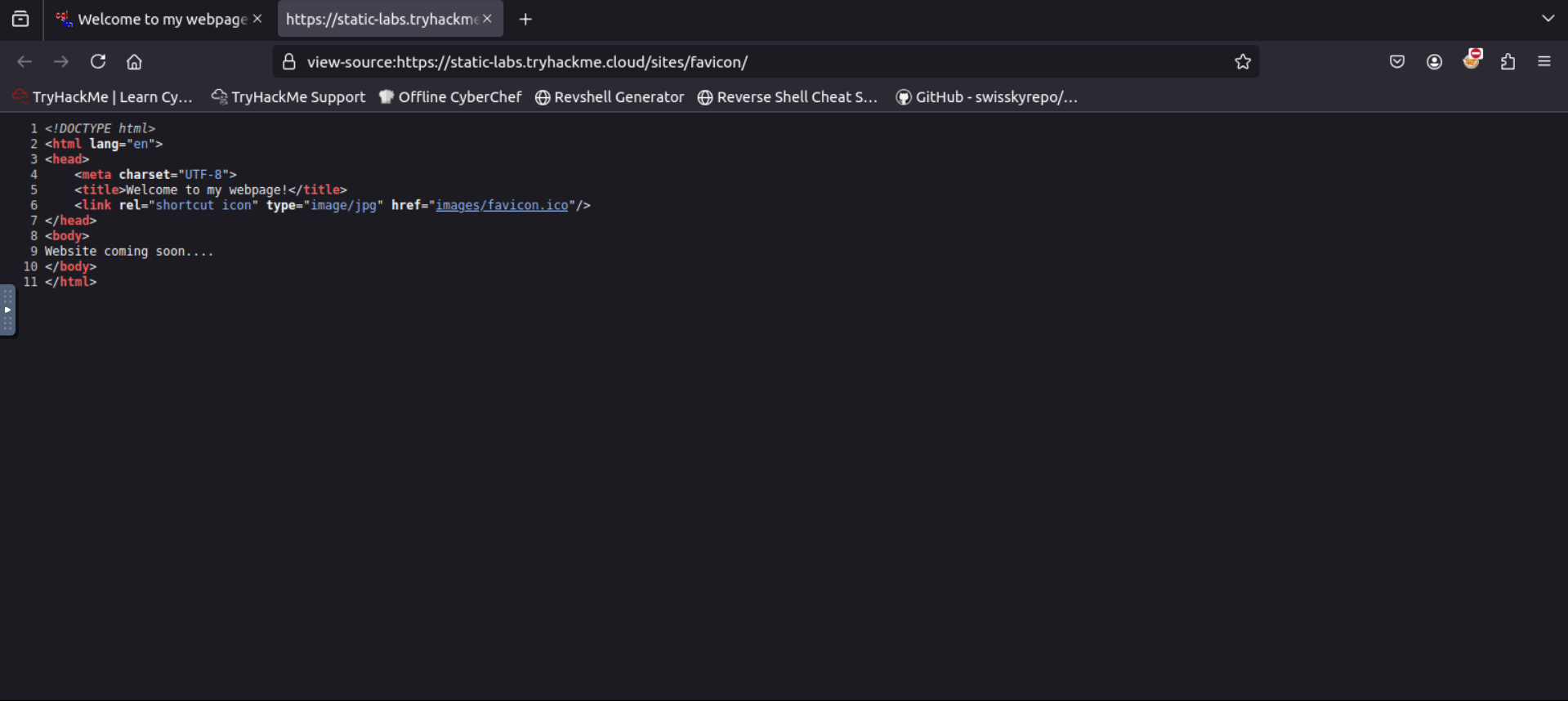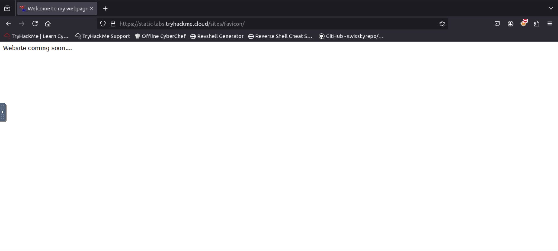 Go to the link https://static-labs.tryhackme.cloud/sites/favicon/ and you’ll see a note from the website. view the page source and you’ll see th(at on /images/facicon.ico there’s a ico