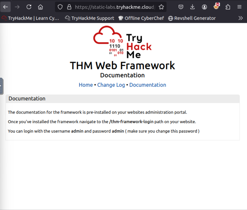THM{CHANGE_DEFAULT_CREDENTIALS}First we go to the https://static-labs.tryhackme.cloud/sites/thm-web-framework/