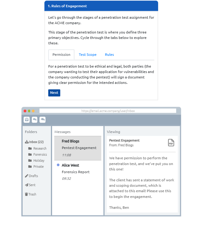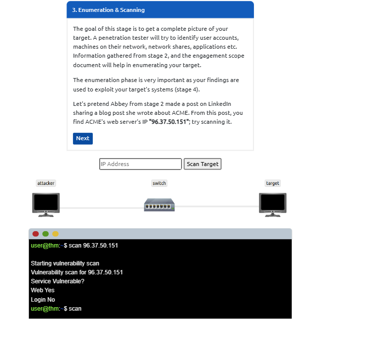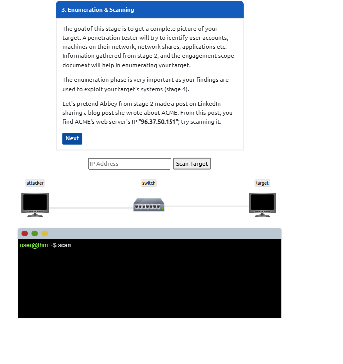 ACME has approached you for an assignment. They want you to carry out the stages of a penetration test on their infrastructure. View the site (by clicking the green button on this task) and follow the guided instructions to complete this exercise.