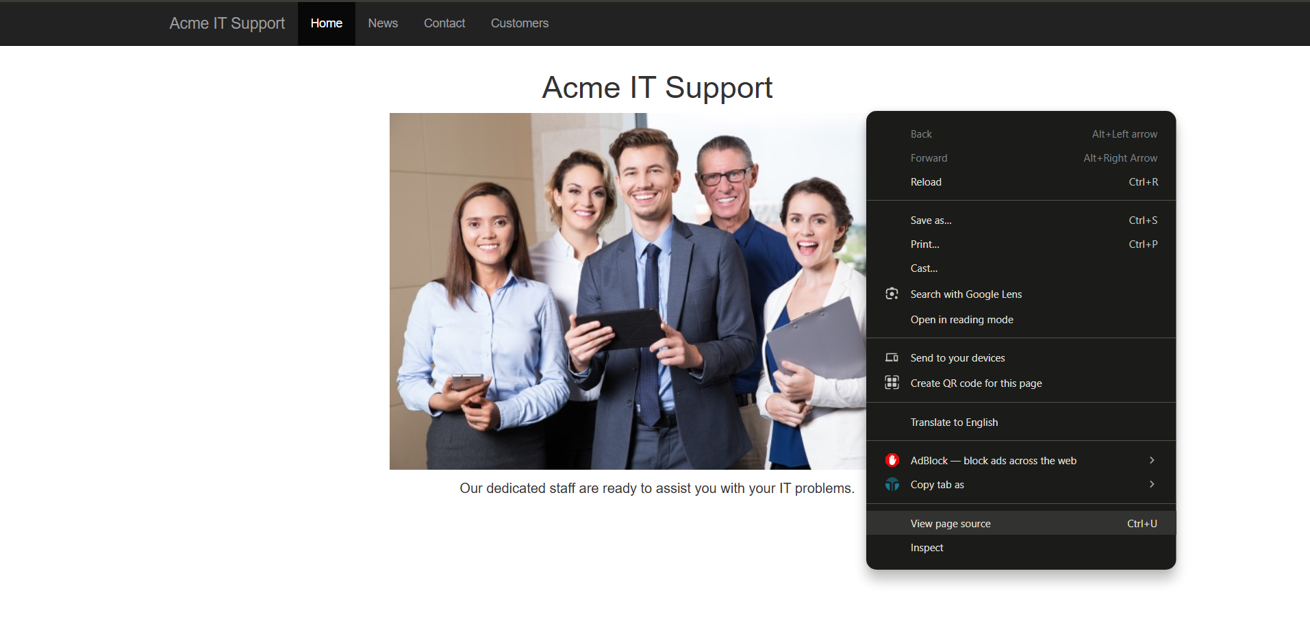 This page contains a summary of what Acme IT Support does with a company photo of their staff.