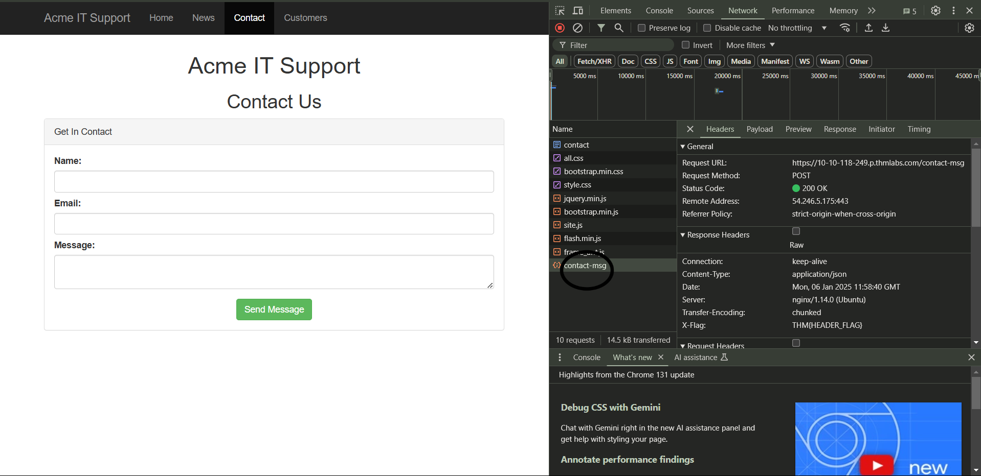 THM{CATCH_ME_IF_YOU_CAN}Task 6 - Developer Tools - Network