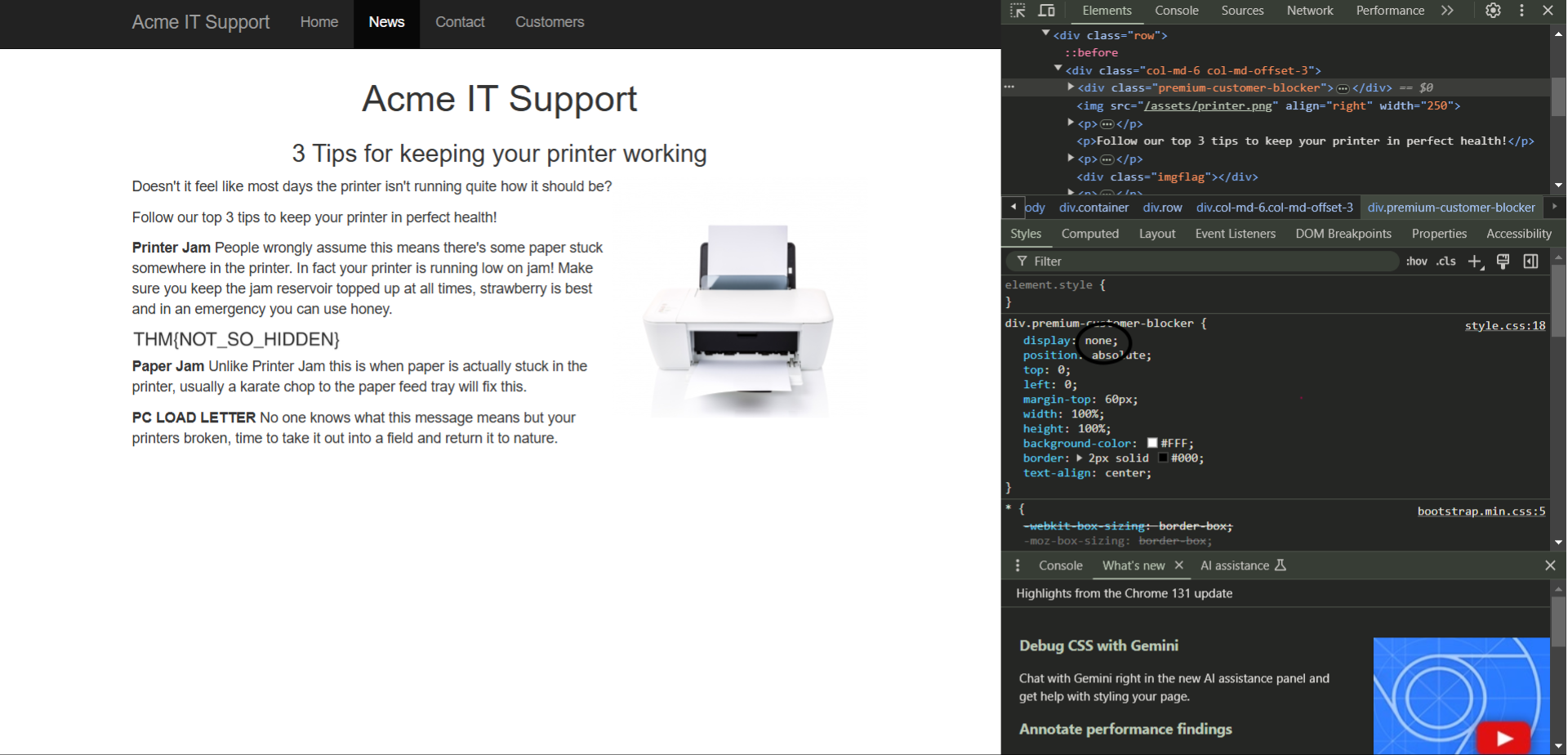 THM{KEEP_YOUR_SOFTWARE_UPDATED}Task 4 - Developer Tools - Inspector